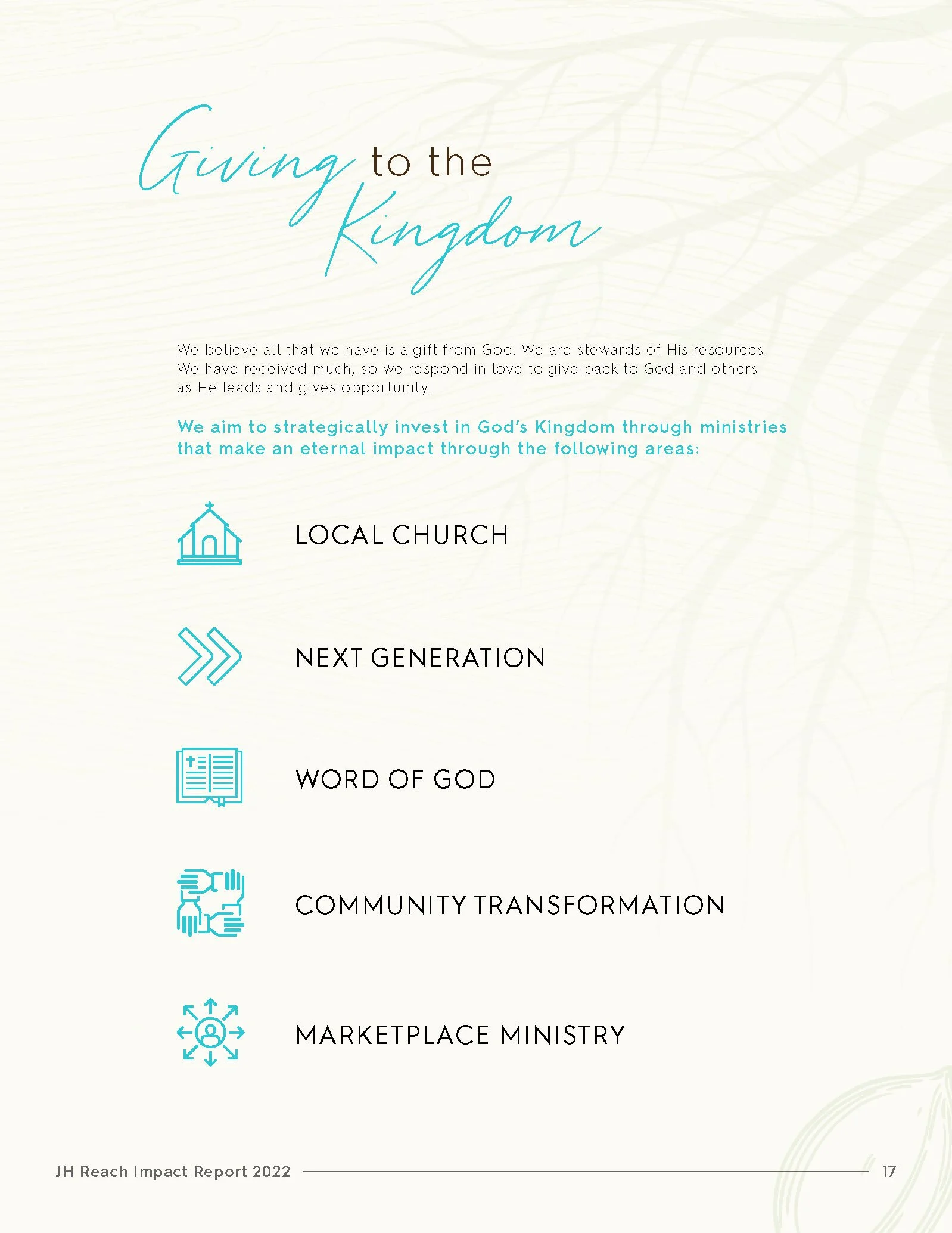 “We aim to strategically invest in God’s Kingdom through ministries that make an internal impact”